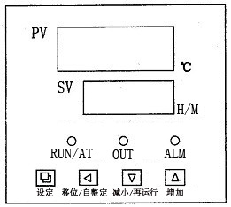 “OUT”指示燈:有加熱輸出此燈點亮,反之熄滅。