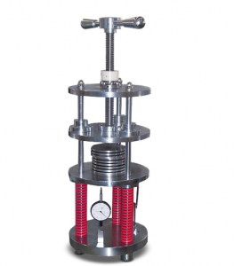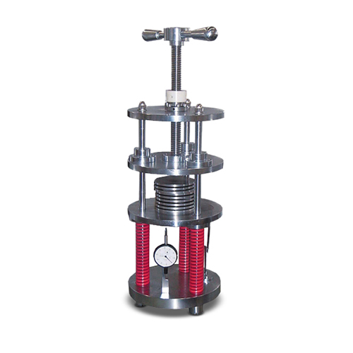 壓縮回彈試驗(yàn)機(jī)用於測(cè)試橡膠制品在承受一定的時(shí)間及壓力後之回彈性能。取標(biāo)準(zhǔn)試片,分布平放於試盤(pán)上,夾於本坲兩板之間,經(jīng)規(guī)定之時(shí)間後取出,釋放試片并冷卻後,分別量測(cè)試片最終之中心厚度,代入公式求其壓縮回彈率。滿(mǎn)足標(biāo)準(zhǔn): FIA304,SATRA-PM64等標(biāo)準(zhǔn)要求。